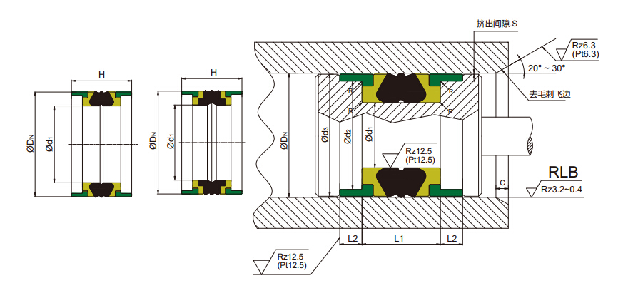 TPM組合密封經(jīng)常在作往復運動的液壓缸和活塞中用作密封元件,如:型推土機、起重機、叉車、液壓閘門及農(nóng)業(yè)機械等。安裝在包括ISO6547標準溝槽的閉合溝槽中。