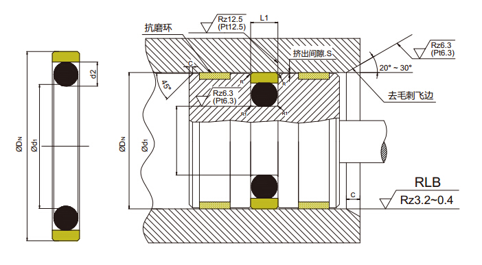 0形圈:丁腈橡膠NBR或氟橡膠FKM