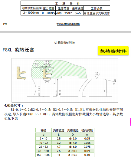 壓力≤(MPa):0~20MPa 速度≤(m/s):5m/s 溫度℃:-200~250℃ 材料:密封套:填充聚四氟乙烯(PTFE)。根據(jù)不同工況和密封要求,可以選用不同的填充材料和填充工藝,具體請(qǐng)垂詢。 彈簧:不銹鋼301、302、304、316或718,根據(jù)具體工況決定,默認(rèn)為301,特殊工況時(shí)請(qǐng)垂詢并于訂貨前說明。 介質(zhì):高低溫油水汽等流體 應(yīng)用:適用于航空、軍事和工業(yè)密封溝槽尺寸,標(biāo)準(zhǔn)安裝溝槽與標(biāo)準(zhǔn)O型圈安裝溝槽一樣,尺寸小。也可設(shè)計(jì)為非標(biāo)件,滿足任何尺寸溝槽的密封要求。溝槽為開式或半開式。 能夠適應(yīng)較大的偏心度和端面跳動(dòng)(低速時(shí))。 咨詢熱線:0757-85587547 |