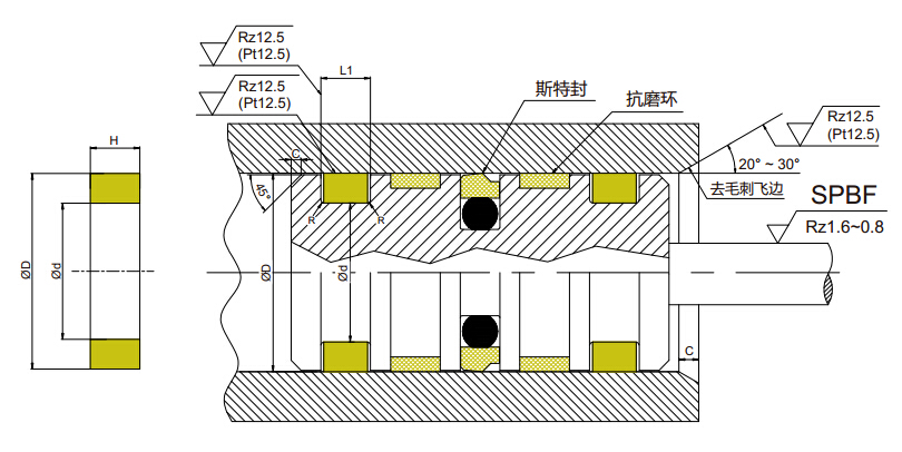 此產(chǎn)品與活塞密封件和抗磨環(huán)結(jié)合使用,防止油缸內(nèi)的油因混有外界物質(zhì)而引起密封件的損壞,并確保密封件有長的使用壽命。與活塞桿密封件,金屬襯套結(jié)合使用時,因聚四氟乙烯樹酯有雜質(zhì)浸沒功能,故可防止活塞桿的損壞。有一切口和油壓旁通槽,防止油壓的積集。