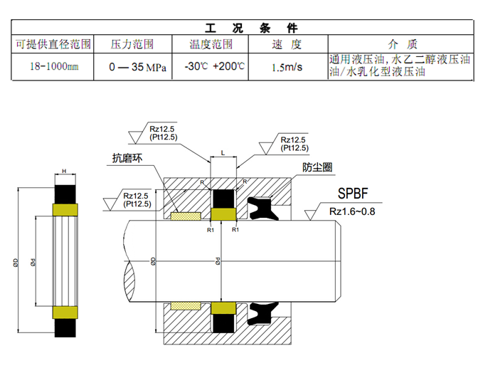 應用范圍:SPN和SPNO性能相同。用于壓力工作范圍廣、滑動速度高的情況??捎糜趶V泛的操作。